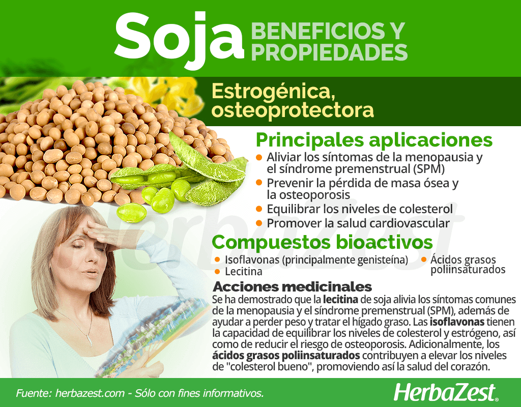 Las semillas de soya son consideradas una fuente completa de proteínas, aportando todos los aminoácidos esenciales. Su composición química incluye aproximadamente 40% de proteína y 20% de aceite. Además, la soya contiene isoflavonas, que son fitoestrógenos con propiedades similares al estrógeno.